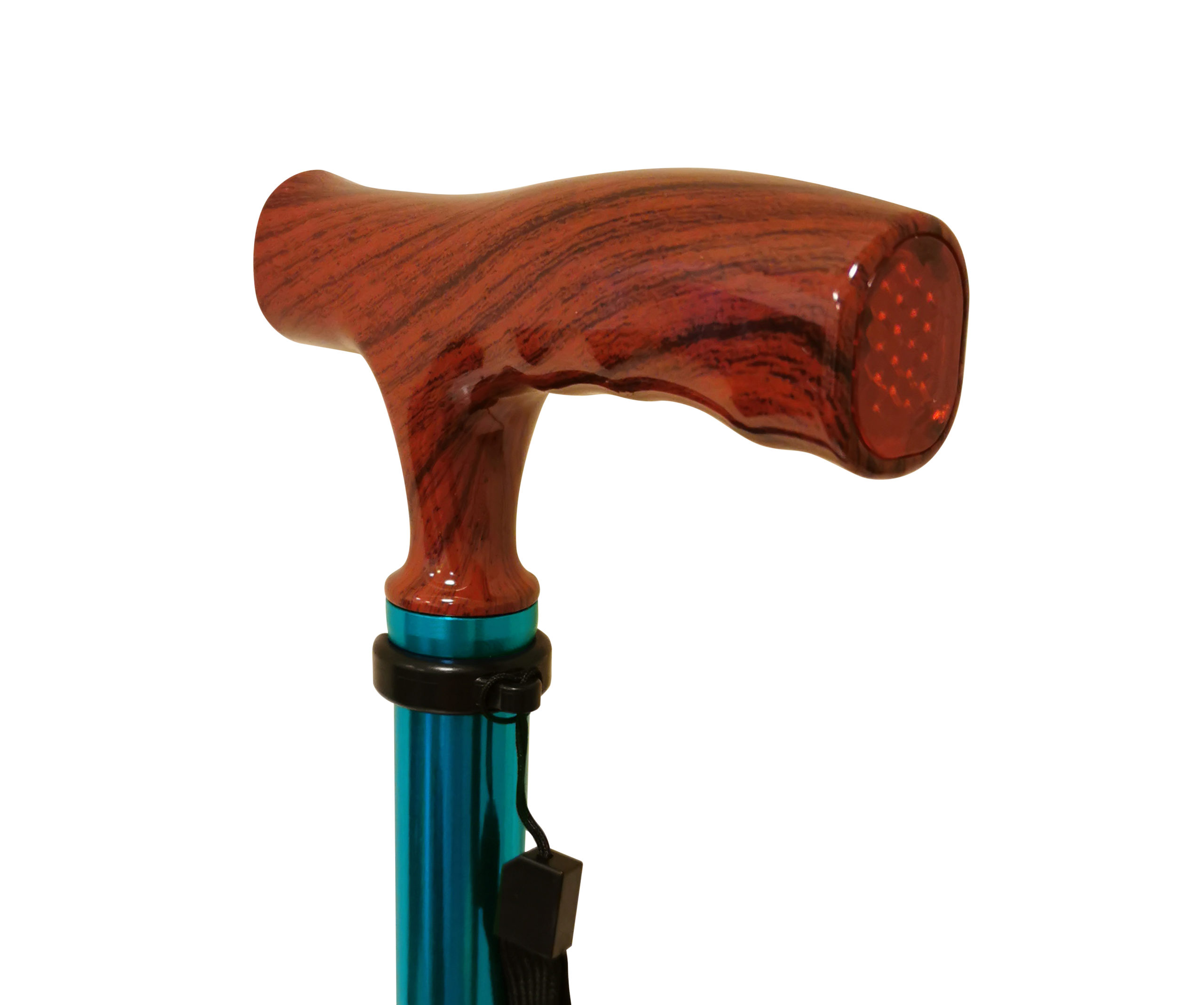 катафотом (светоотражателем). Изящное узкое соединение рукояти с шафтом обеспечивает дополнительный комфорт при удержании рукояти двумя пальцами. Трость с такой рукоятью используется при нарушении