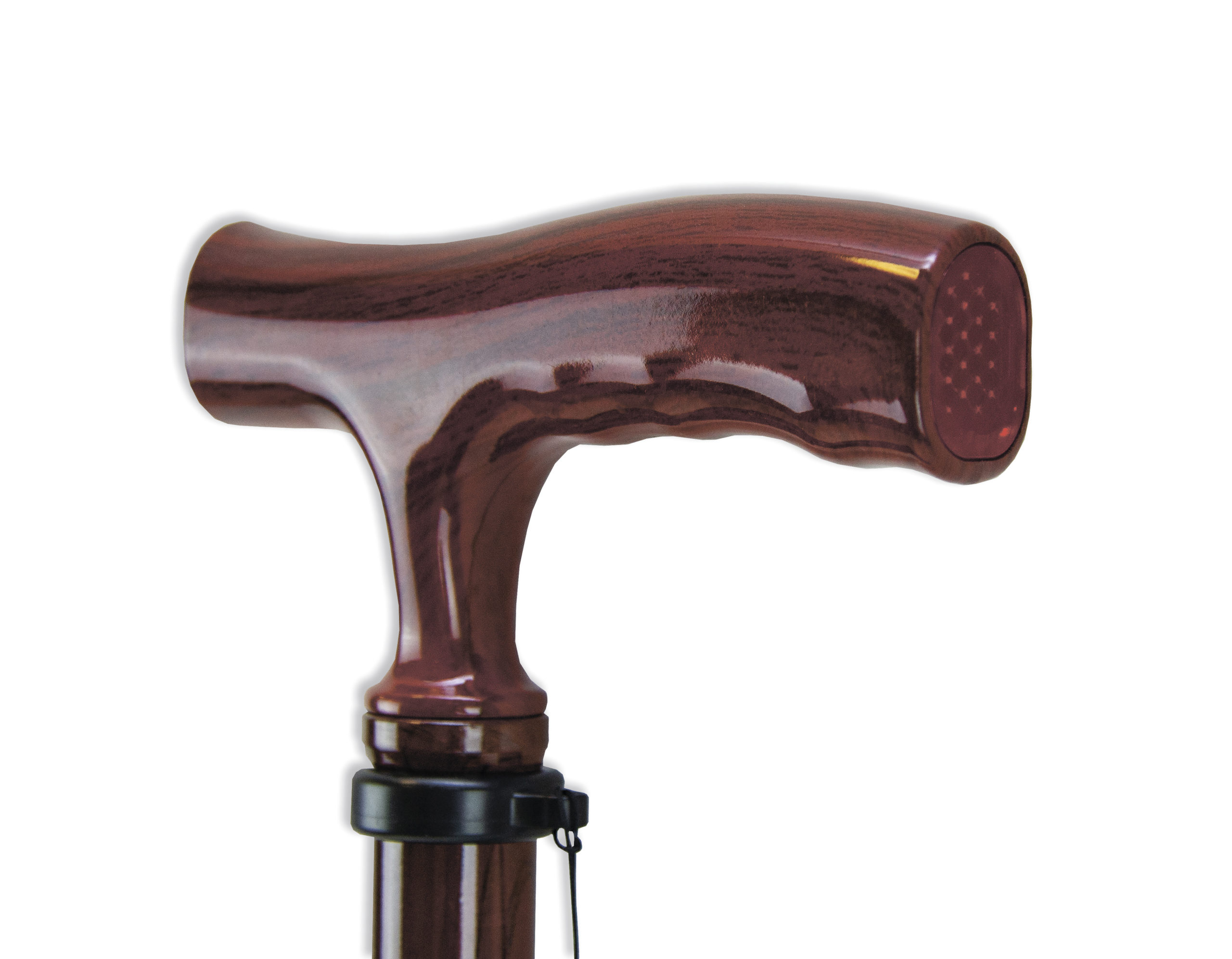 катафотом (светоотражателем). Изящное узкое соединение рукояти с шафтом обеспечивает дополнительный комфорт при удержании рукояти двумя пальцами. Трость с такой рукоятью используется при нарушении