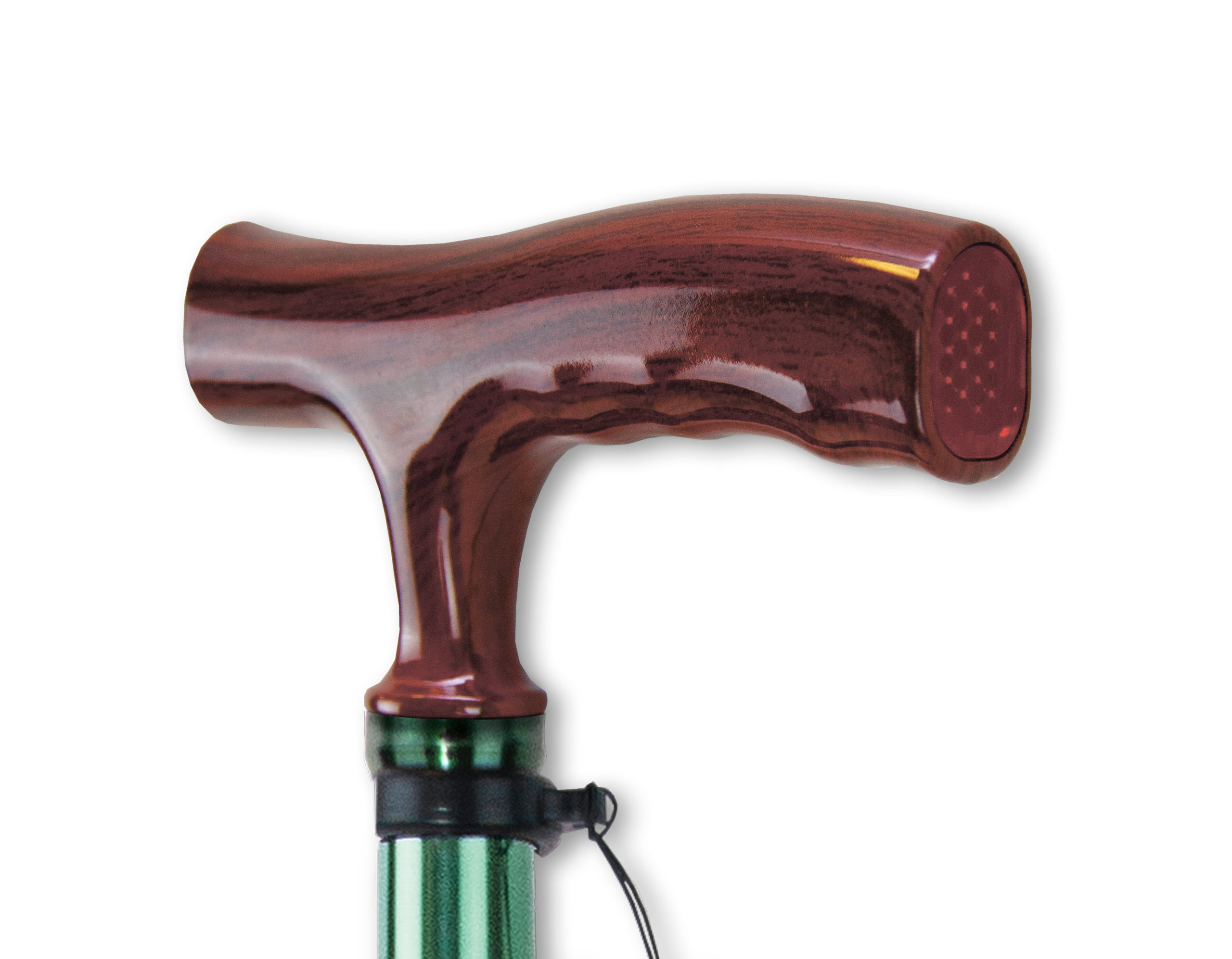 катафотом (светоотражателем). Изящное узкое соединение рукояти с шафтом обеспечивает дополнительный комфорт при удержании рукояти двумя пальцами. Трость с такой рукоятью используется при нарушении