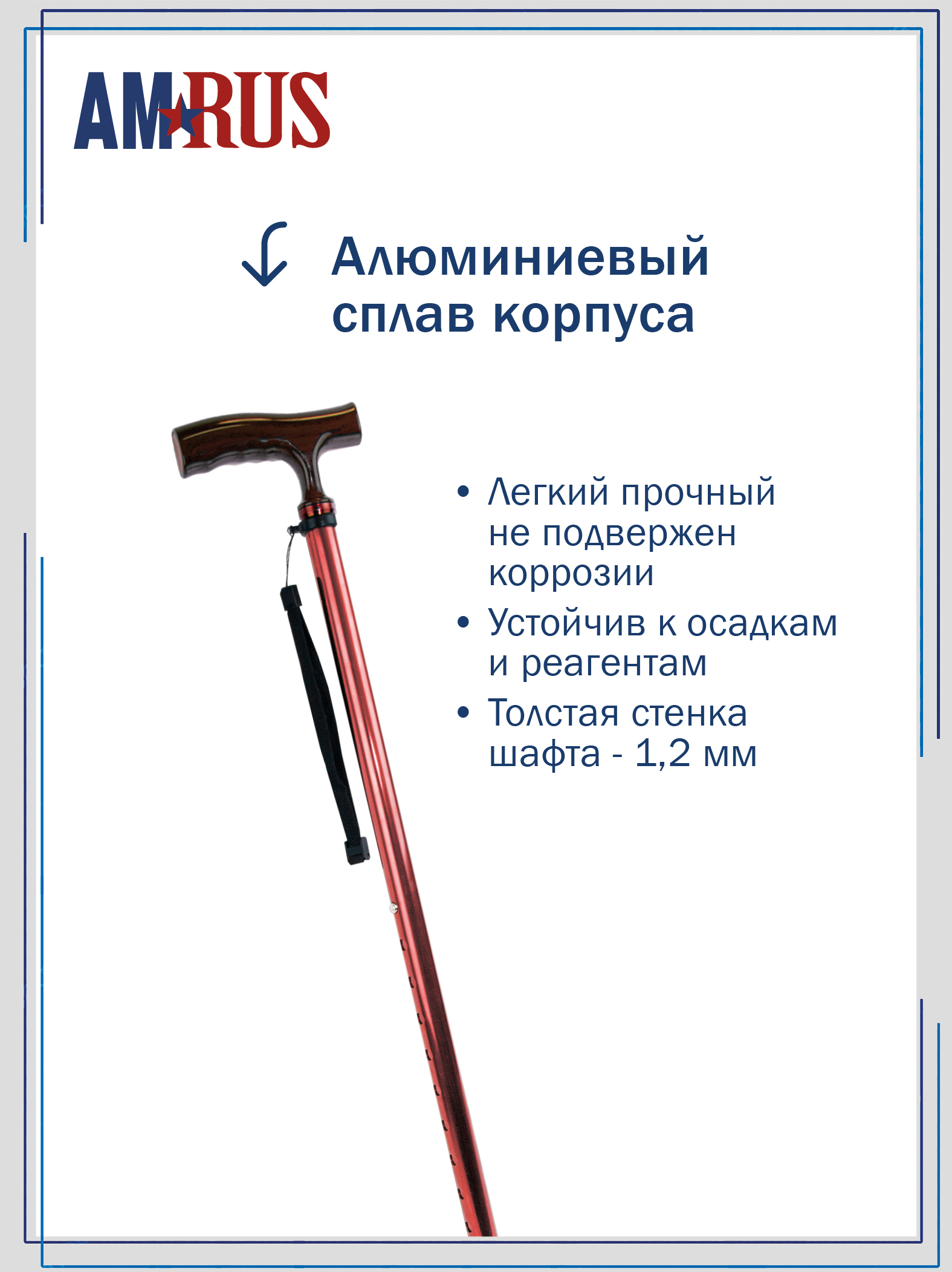 Трость предназначена для облегчения самостоятельного передвижения, обеспечивает дополнительную