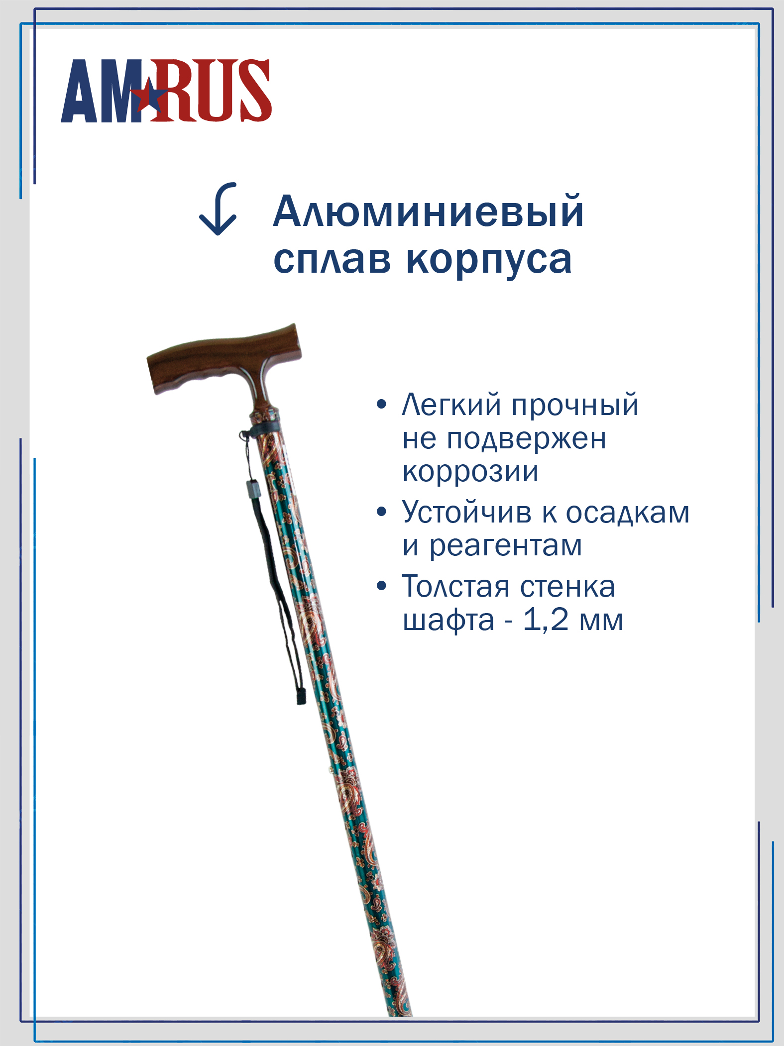 Трость предназначена для облегчения самостоятельного передвижения, обеспечивает дополнительную
