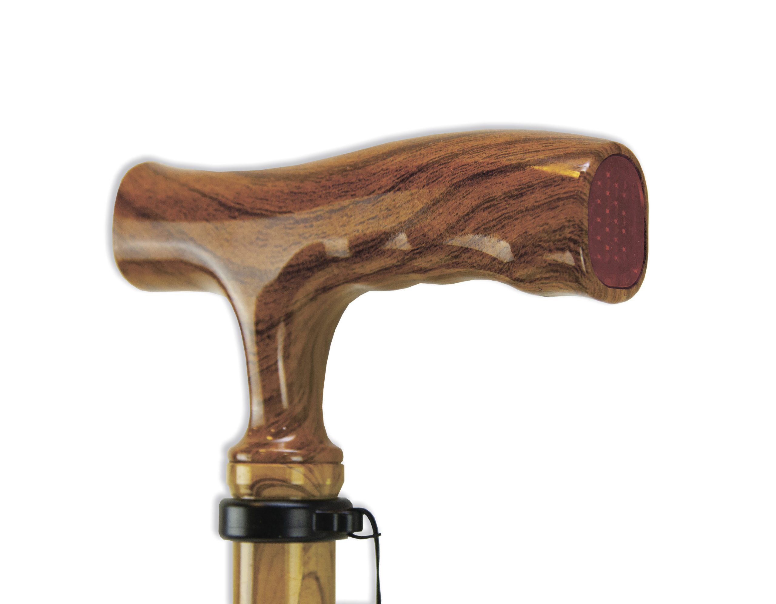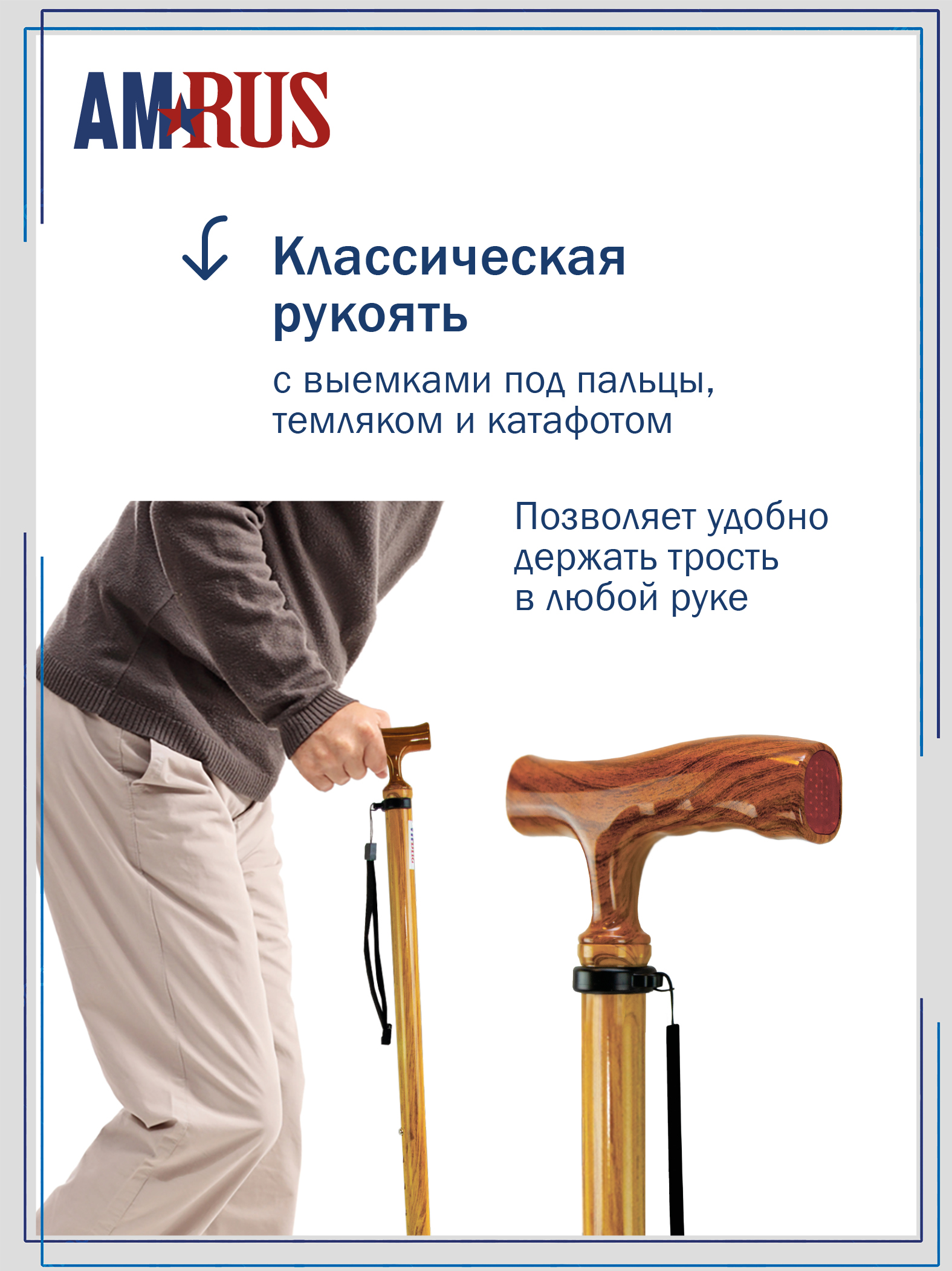 катафотом (светоотражателем). Изящное узкое соединение рукояти с шафтом обеспечивает дополнительный комфорт при удержании рукояти двумя пальцами. Трость с такой рукоятью используется при нарушении функции устойчивости и ходьбы. На рукояти трости есть темляк (ремешок на кисть). Темляк снабжен пряжкой